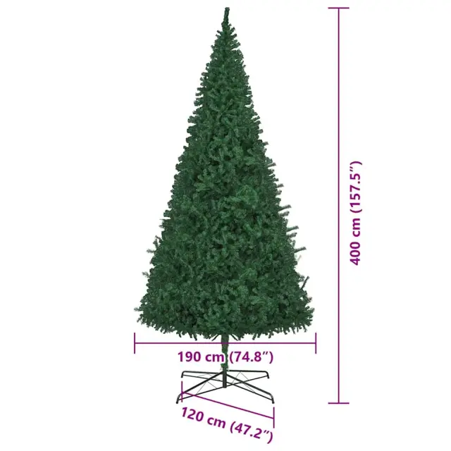 vidaXL Božično drevo z dekorativnimi lučmi Zelena 400 cm PVC