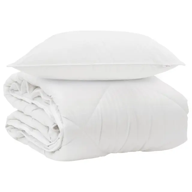 • Sestava iz mikrovlaken: Odeja in blazina sta izdelani iz kakovostnih mikrovlaken, znanih po mehkobi in lahkosti. Ta material nudi udobje in zagotavlja miren spanec. Odpornost proti gubam pomeni, da ohranja svoj videz brez večjih naporov.
