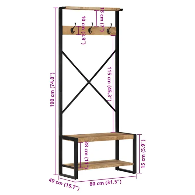 vidaXL Clothes Rack 80x40x190 cm Solid Rough Wood Mango