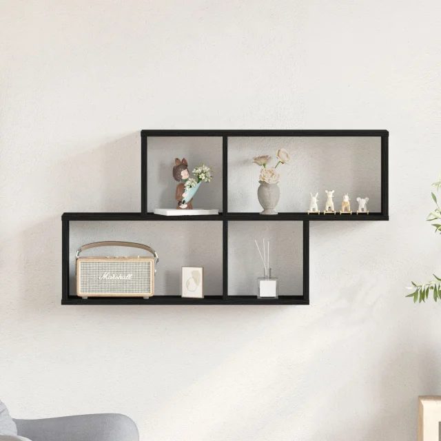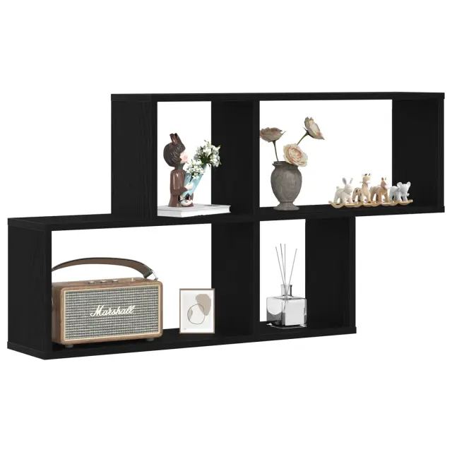vidaXL Črn hrastov zidni kabinet 76x15x53 cm izdelan iz inženirskega lesa