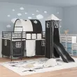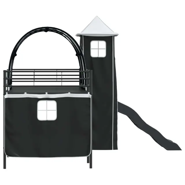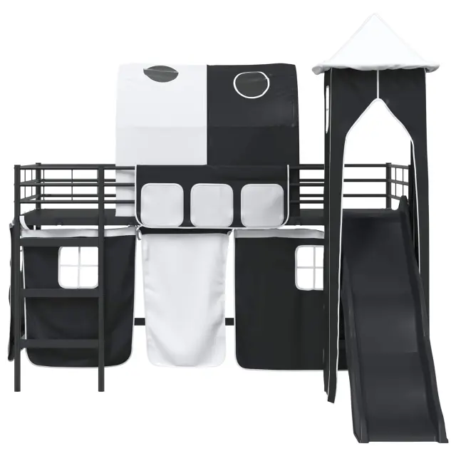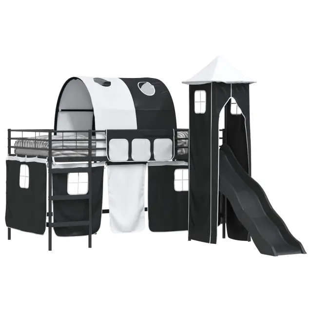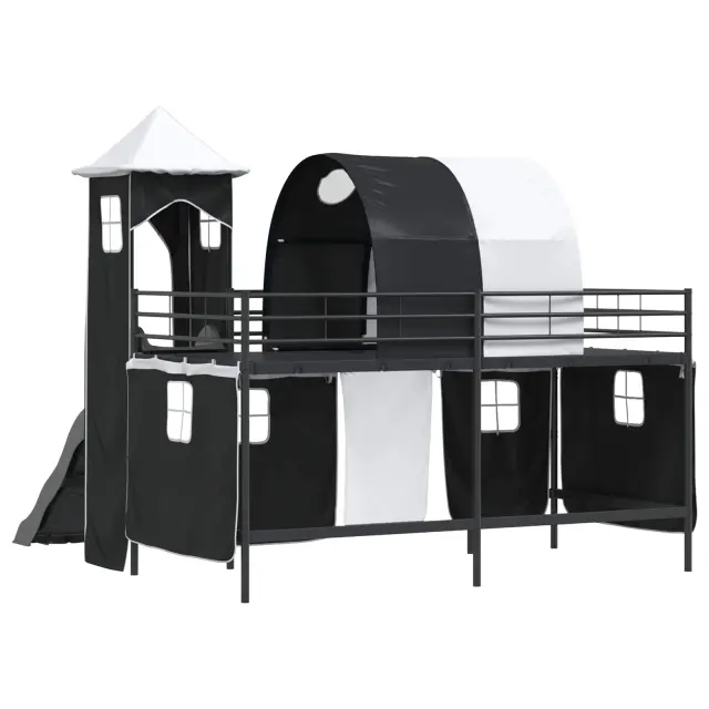 Ta moderna otroška postelja na podstrešju z zavesami, lokom, toboganom in stolpom ponuja zabavno in praktično rešitev za otroške spalnice. Njena sodobna zasnova daje eleganten in svež videz ter postane prava zvezda v prostoru. S stolpom in privlačnim toboganom združuje stil in zabavo, kar odhod v posteljo spremeni v veselo izkušnjo. Njena pametna zasnova optimizira prostor, kar je super za aktivne otroke in vsebuje lastnosti, ki spodbujajo domišljijo in ustvarjalnost. Kombinacija privlačnega videza in praktičnosti naredi to posteljo idealno izbiro za dinamične prostore.