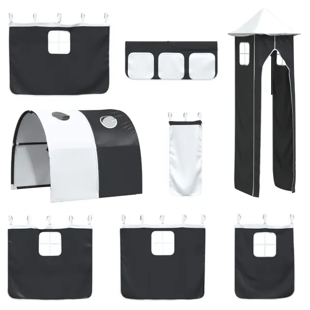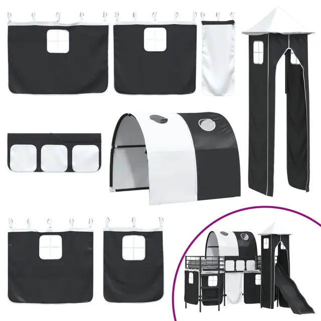 Ta moderna otroška postelja na podstrešju z zavesami, lokom, toboganom in stolpom ponuja zabavno in praktično rešitev za otroške spalnice. Njena sodobna zasnova daje eleganten in svež videz ter postane prava zvezda v prostoru. S stolpom in privlačnim toboganom združuje stil in zabavo, kar odhod v posteljo spremeni v veselo izkušnjo. Njena pametna zasnova optimizira prostor, kar je super za aktivne otroke in vsebuje lastnosti, ki spodbujajo domišljijo in ustvarjalnost. Kombinacija privlačnega videza in praktičnosti naredi to posteljo idealno izbiro za dinamične prostore.