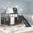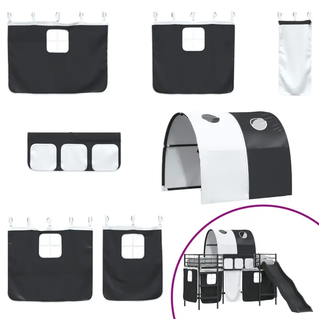 Otroški pograd s draperijami, lokom in toboganom je zasnovan za združevanje zabave in funkcionalnosti, kar ustvari čarobno mesto za spanje, ki ga otroci naravnost obožujejo. Izdelan za sodobne domove, ta pravokotni pograd ima eleganten videz, ki se brez težav prilega v katero koli spalnico. Uporaba trpežnih materialov, skupaj z zabavnim toboganom in prilagodljivimi draperijami, nudi privlačno okolje za počitek in igro. Črna in modra barvna shema dodaja cool in sodoben pridih, kar ga naredi kako praktičnega, tako tudi vznemirljivega dodatka v prostoru.