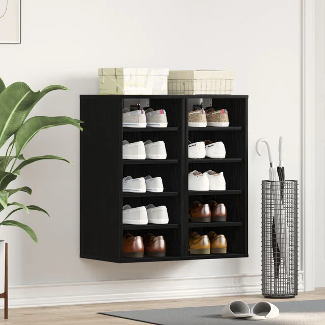 vidaXL Črna omara za čevlje, 2 kosa, Oreh, 32x35x70 cm, Iz inženirskega lesa