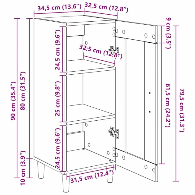 vidaXL Črni hrast 34,5 x 32,5 x 90 cm Konstruiran les