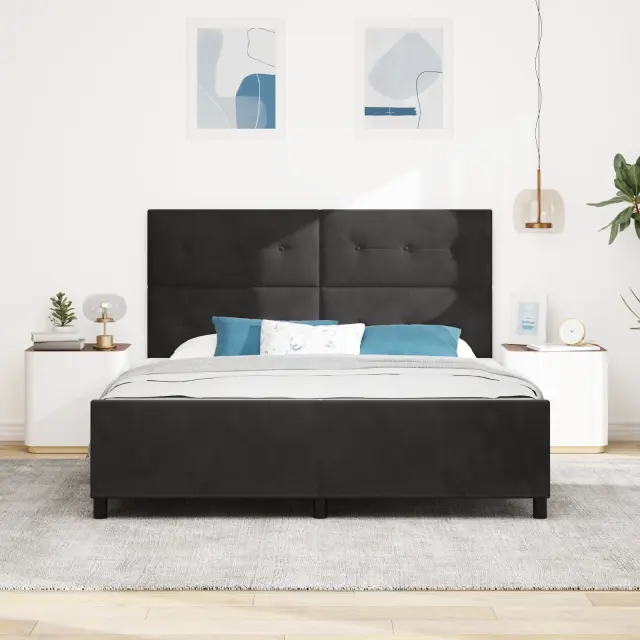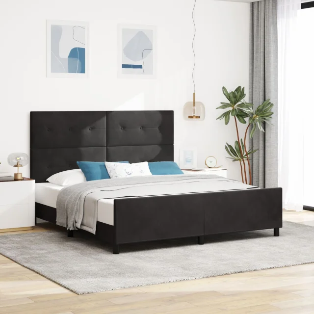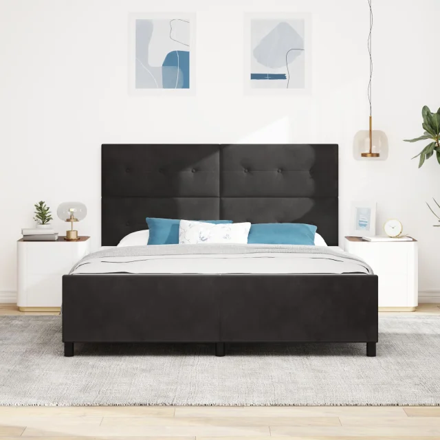 Ta gumbasta črna postelja je popolna izbira za moderno spalnico, udobno sprejme dve osebi. Njena elegantna zasnova ima čudovit gumbasto oblikovan naslonjalo, idealno za sproščanje ob dobri knjigi. Ta postelja zagotovo pritegne pozornost v tvojem prostoru.