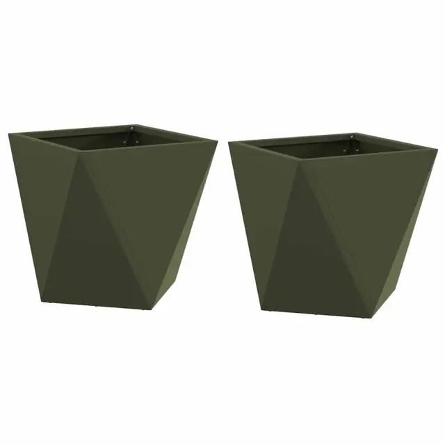 vidaXL Cvetlično korito 2 pcs Oljčno zelena 30 x 30 x 30 cm Jeklo