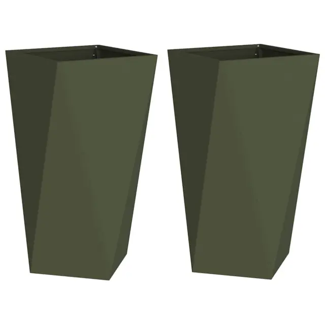 vidaXL Cvetlično korito 2 pcs Oljčno zelena 40 x 40 x 75 cm Jeklo