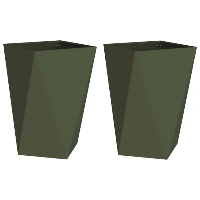 vidaXL Cvetlično korito 2 pcs Oljčno zelena 50 x 50 x 75 cm Jeklo