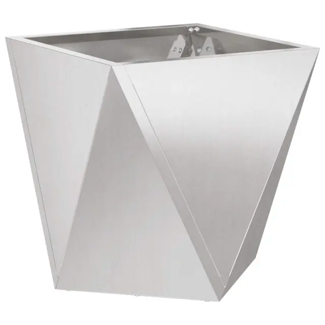 • Materiali: Ta lončnik je v celoti iz jekla, kar mu daje moč in odpornost na slabo vreme. Moderni material je hkrati prakticen in deluje dolgo.