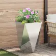 • Materiali: Ta lončnik je v celoti iz jekla, kar mu daje moč in odpornost na slabo vreme. Moderni material je hkrati prakticen in deluje dolgo.