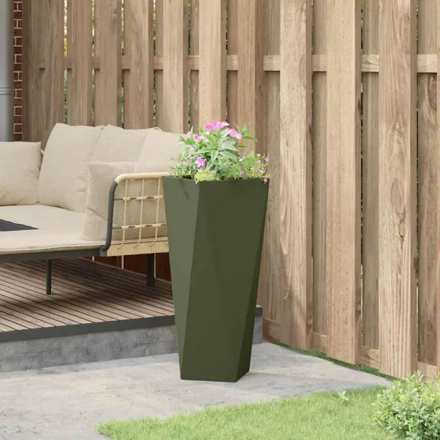 vidaXL Cvetlično korito Oljčno zelena 30 x 30 x 75 cm Jeklo