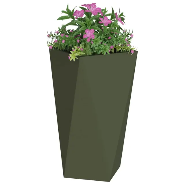 vidaXL Cvetlično korito Oljčno zelena 40 x 40 x 75 cm Jeklo