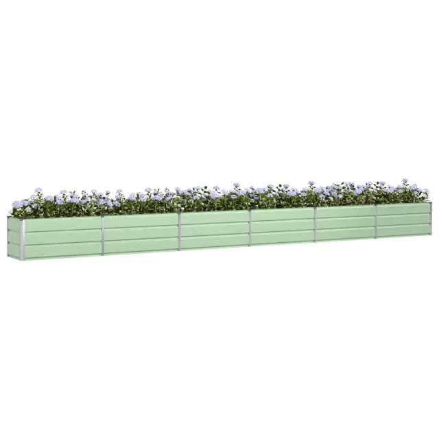 Ta posoda iz barvnega jekla prinaša moderno noto vsakemu vrtu ali terasi in združuje uporabnost s privlačnim videzom. Narejena iz pocinkanega jekla, obeta dolgotrajnost in ohranja industrijski šarm. Njena trdna konstrukcija je idealna za zunanje prostore in lepo dopolnjuje tako sodobne kot tradicionalne postavitve.