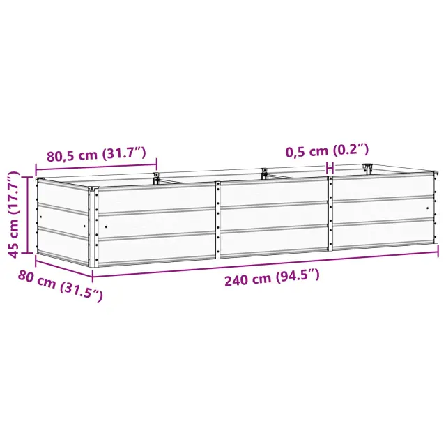 vidaXL Cvetlično korito Slonokoščena 240 x 80 x 45 cm Jeklo