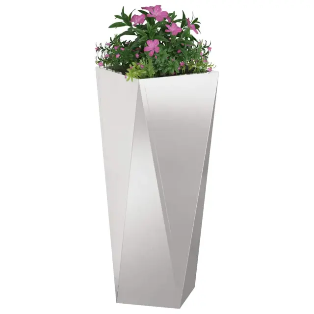 • Materiali: Ta lončnik je v celoti iz jekla, kar mu daje moč in odpornost na slabo vreme. Moderni material je hkrati prakticen in deluje dolgo.