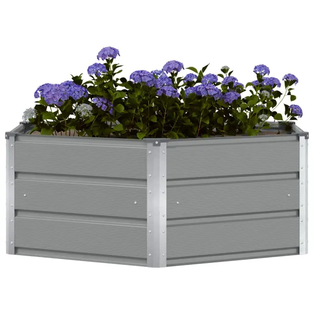 To šesterokotno barvno jekleno korito je moderni dodatek. Izdelano je iz trdnega jekla in ponuja ravno pravi preplet elegance in uporabnosti za zunanjo dekoracijo. Super se prilega v različne vrste vrtov in teras ter doda sodoben pridih.