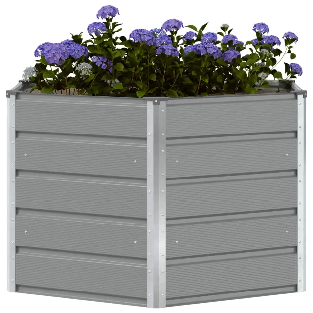 To šesterokotno barvno jekleno korito je moderni dodatek. Izdelano je iz trdnega jekla in ponuja ravno pravi preplet elegance in uporabnosti za zunanjo dekoracijo. Super se prilega v različne vrste vrtov in teras ter doda sodoben pridih.