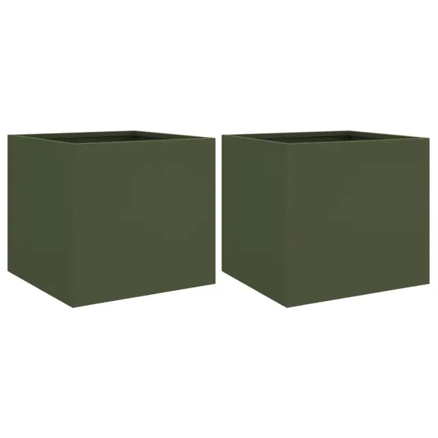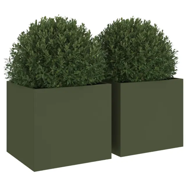 vidaXL Cvetlično korito 2 kosa olivno zeleno 32x30x29 cm jeklo