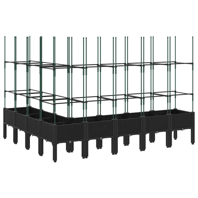 vidaXL Cvetlično korito z oporno mrežo črno 200x160x142,5 cm PP