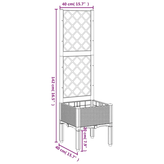 vidaXL Cvetlično korito z oporno mrežo rjavo 40x40x142 cm PP