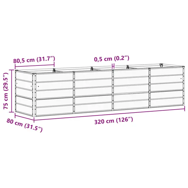 vidaXL Cvetlično korito Zelena 320 x 80 x 75 cm Jeklo