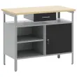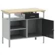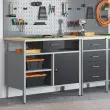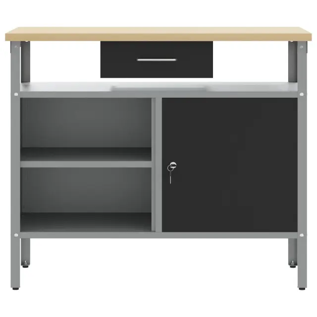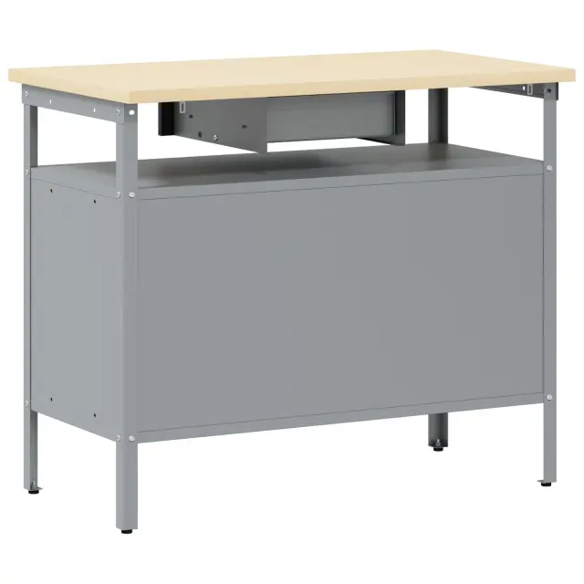 Ta moderna delovna miza iz jekla združuje stil in praktičnost, kar jo dela odlično izbiro za vsak notranji prostor, kot so delavnice ali ustvarjalne sobe. Z elegantno pravokotno obliko in šik sivimi, črnimi in rjavimi odtenki, ne le da izpolnjuje svoj namen, ampak tudi polepša vaš prostor.
