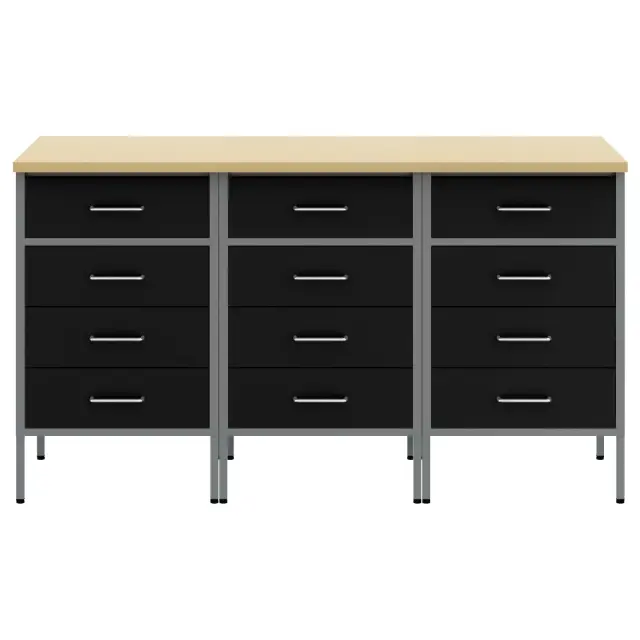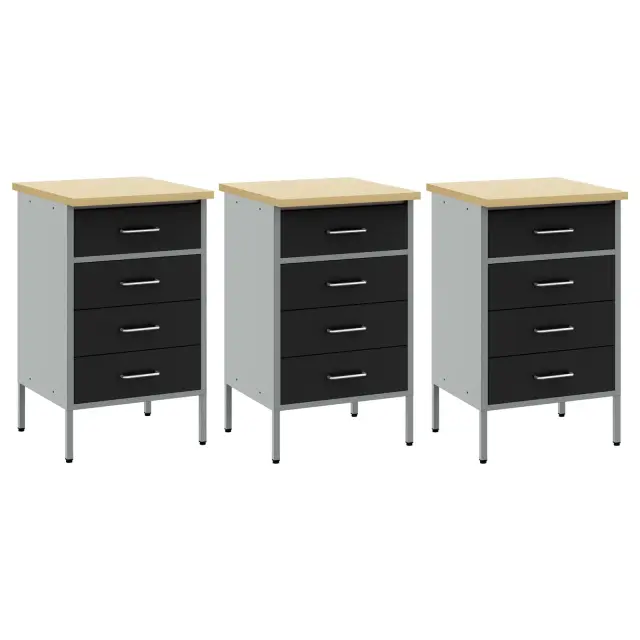 Ta industrijska delovna omara s 4 predali je popoln način, da si organizirate garažo ali delavnico. S svojim črno-sivim izgledom in leseno končno obdelavo združuje praktičnost in industrijski stil. Doda funkcionalnost in organizacijo za vsak delovni prostor.