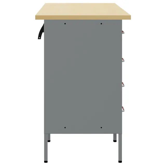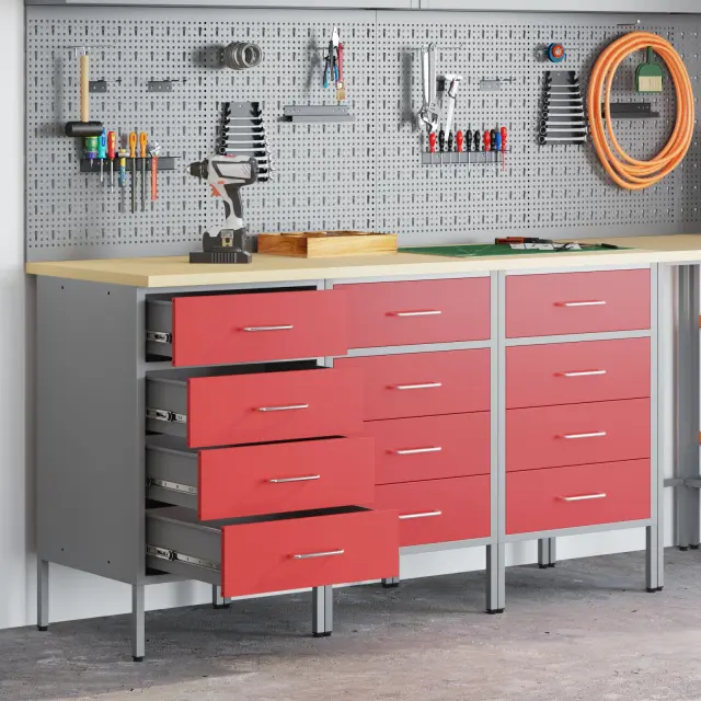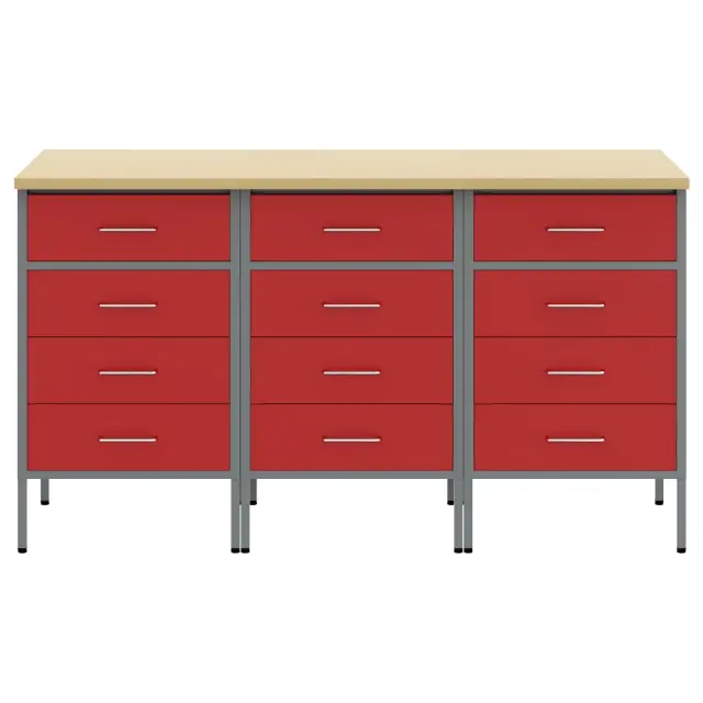 Ta industrijski stil delovni kabinet je vse o funkciji in stilu, kar ga naredi nujno potreben za vsako delavnico ali garažo. S svojim elegantnim rdečim in sivim zaključkom ter lesom podobno površino ti nudi ogromno prostora za shranjevanje, hkrati pa dvigne videz tvojega prostora – idealen za strokovnjake in DIY navdušence, ki vrednotijo urejenost in stil.