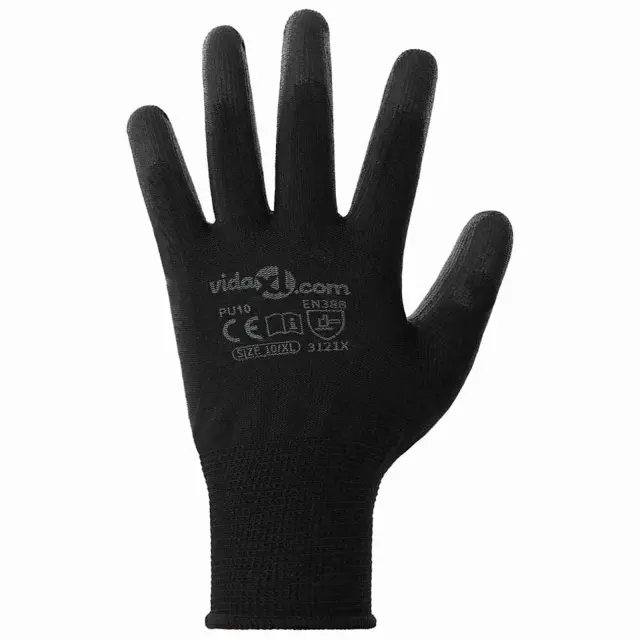 vidaXL Delovne rokavice 12 pcs Črna 10 / xl Poliester