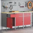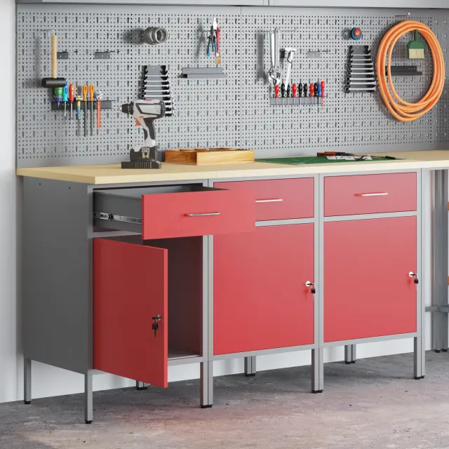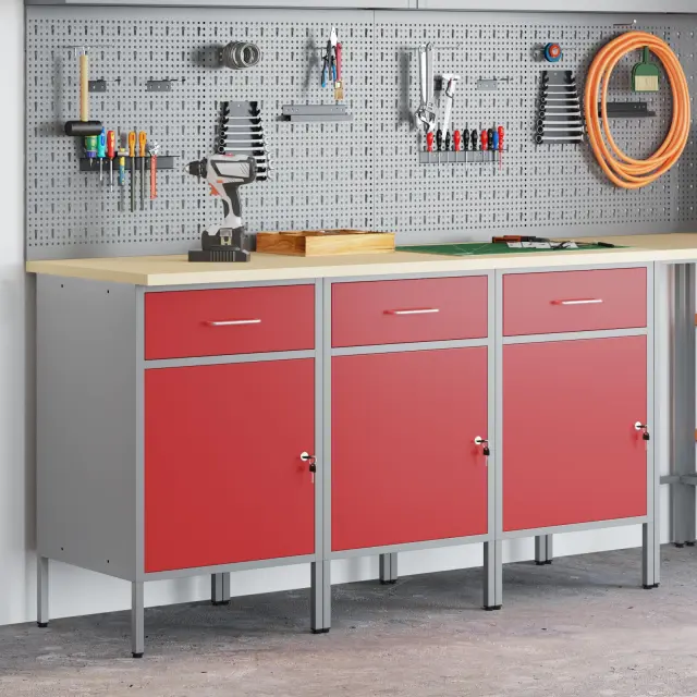 Ta industrijski delovni kabinet združuje funkcionalnost in stil, kar ga dela idealnega za tvoje shranjevalne potrebe v delavnicah, garažah ali pisarnah. Z močnim jeklenim okvirjem in stilsko leseneno površino ni le praktičen, ampak tudi daje prijeten izgled tvojem prostoru.