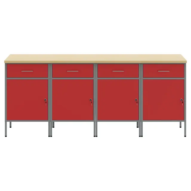 Ta delovni kabinet združuje funkcionalnost in stil, kar je idealno za shranjevanje orodij v delavnicah in garažah. Živahna rdeča in siva barva prinaša osvežitev v vsak industrijski videz, hkrati pa nudi dovolj prostora za tvojo opremo.