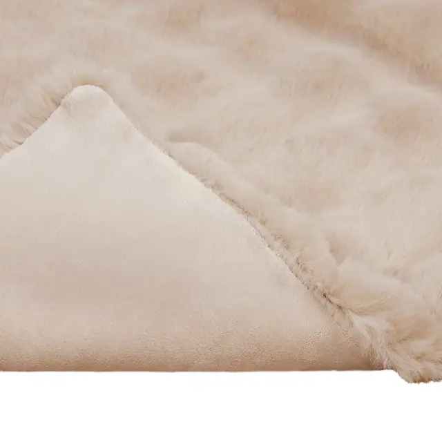 vidaXL Dežnik iz umetnega zajčjega krzna Bež 220 x 240 cm Poliester