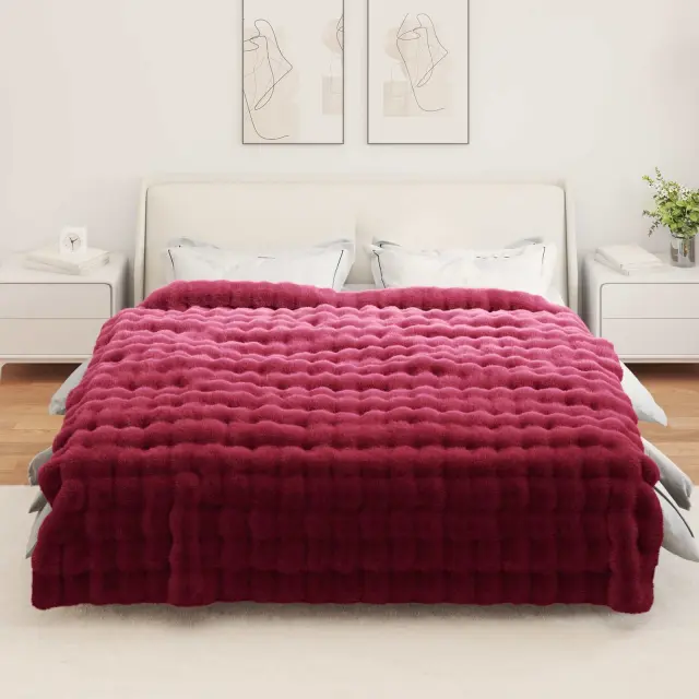 vidaXL Dežnik iz umetnega zajčjega krzna Bordeaux rdeča 240 x 270 cm