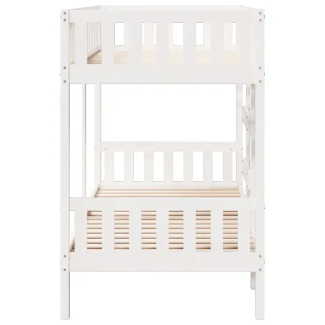 Ta okvir za pograd je prostorsko varčna rešitev z dvema posteljama v eni, zato je idealen za goste, prenočevanje in družine z več otroki. Stabilen in dolgotrajen okvir: Trdna borovina je znana po svoji trdnosti in trajnosti. Ravni vzorci in značilni vozli prispevajo k njenemu rustikalnemu čaru.Povečajte izkoriščenost prostora: Ta okvir za pograd pametno združuje dve enojni postelji v eno in tako ponuja prostorsko varčno rešitev za goste in družine z več otroki.Zlahka se povzpnete in spustite: Ta posteljni okvir ima vgrajeno lestev, ki uporabnikom omogoča udoben dostop do postelje.Varovalne ograje za večjo varnost: Ta posteljni okvir je opremljen z varovalnimi ograjami, ki preprečujejo, da bi med spanjem padli s postelje.Opozorilo:Za preprečitev prevračanja je treba ta izdelek uporabiti s priloženo napravo za pritrditev na steno.Dobro je vedeti:Vzmetnice niso priložene tej postelji. Ponujamo različno izbiro ležišč. V naši trgovini si lahko ogledate ustrezne vzmetnice.Vijaki in čepi za notranjost stene niso priloženi. Svetujemo vam, da poiščete in uporabite vijake in zatiče, ki so primerni za vaše stene. Če niste prepričani, se lahko posvetujete s strokovnjakom. Preberite in upoštevajte vse korake v navodilih.Barva: BelaMaterial: Trdna borovinaCelotne dimenzije: 195,5 x 75 x 145,5 cm (D x Š x V)Višina zaščitne ograje: 25,6 / 28,8 cmVišina spalnega prostora, merjena od tal: 111 cmVelikost primerne vzmetnice: 75 x 190 cm (Š x D) (vzmetnica ni priložena)Največja debelina vzmetnice: 10 cmNajvečja nosilnost (z ležiščem): 100 kgZ letvenim podomPotrebno sestavljanje: DaLegal Documents:Več informacij o tem, kako preprečiti prevračanje pohištva, je na voljo tukaj 3308608
