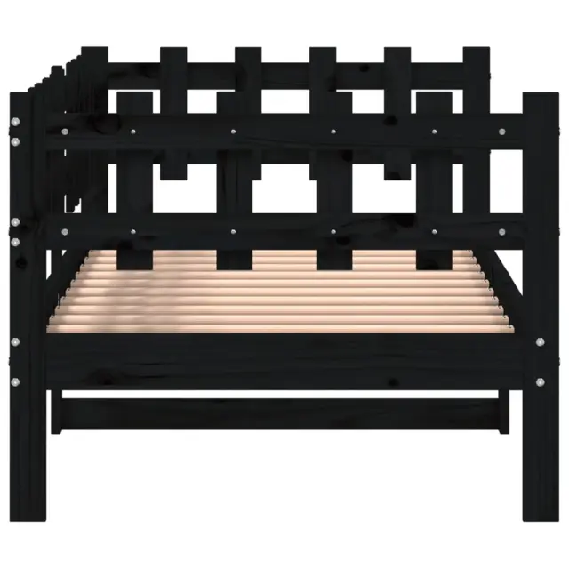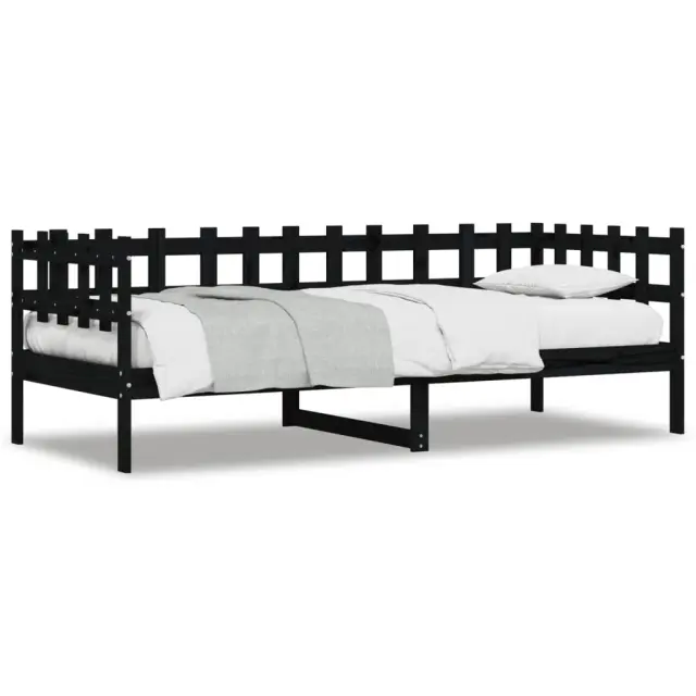 To vsestransko leseno dnevno posteljo lahko uporabljate kot posteljo v spalnici ali pa kot kavč v dnevni sobi. Zadovoljila bo vse vaše potrebe in vam zagotovita dovolj prostora za spanje ter počitek. Trdna borovina: Trdna borovina je čudovit naravni material. Borovina ima ravne vzorce, grče pa dajejo materialu njegov značilen, rustikalen videz. Postelja za goste je izdelana iz trdne borovine, zato je bolj stabilna in trpežna.3-stranska posteljna ograja: Stranice dnevne postelje se ponašajo z edinstvenim dizajnom, ki zagotavlja občutek varnosti in hkrati vašemu domu doda pridih prefinjenosti.Letven dizajn: Leseno letveno dno omogoča boljše kroženje zraka, zato bo vzmetnica dlje časa ostala sveža, ter izboljšuje nosilnost postelje in zagotavlja stabilnost.Večnamenska dnevna postelja: Ta lesena dnevna postelja se lahko uporablja kot kavč podnevi ali kot postelja ponoči ter ponuja hitro rešitev za goste, ki bodo prenočili.Dodaten prostor za shranjevanje: Prostor pod posteljo izkoristite za shranjevanje različnih stvari. To je popolno mesto za shranjevanje škatel z oblačili, igračami ali prešitimi odejami. Dobro je vedeti:Vzmetnica ni priložena tej postelji. Ponujamo različno izbiro ležišč. V naši trgovini si lahko ogledate ustrezne vzmetnice.Barva: ČrnaMaterial: Trdna borovina Celotne dimenzije: 203,5 x 88 x 68,5 cm (D x Š x V)Velikost primerne vzmetnice: 80 x 200 cm (Š x D) (vzmetnica ni priložena)Potrebno sestavljanje: Da 840378