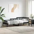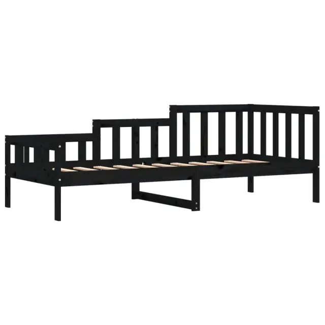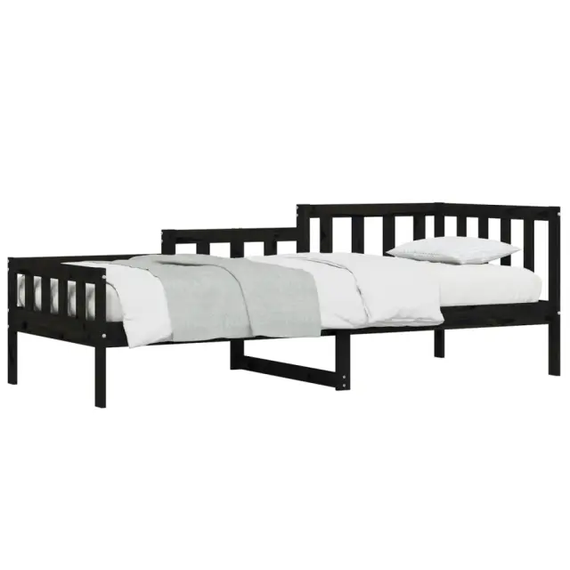 To vsestransko leseno dnevno posteljo lahko uporabljate kot posteljo v spalnici ali pa kot kavč v dnevni sobi. Zadovoljila bo vse vaše potrebe in vam zagotovita dovolj prostora za spanje ter počitek. Trdna borovina: Trdna borovina je čudovit naravni material. Borovina ima ravne vzorce, grče pa dajejo materialu njegov značilen, rustikalen videz. Postelja za goste je izdelana iz trdne borovine, zato je bolj stabilna in trpežna.3-stranska posteljna ograja: Stranice dnevne postelje se ponašajo z edinstvenim dizajnom, ki zagotavlja občutek varnosti in hkrati vašemu domu doda pridih prefinjenosti.Letven dizajn: Leseno letveno dno omogoča boljše kroženje zraka, zato bo vzmetnica dlje časa ostala sveža, ter izboljšuje nosilnost postelje in zagotavlja stabilnost.Večnamenska dnevna postelja: Ta lesena dnevna postelja se lahko uporablja kot kavč podnevi ali kot postelja ponoči ter ponuja hitro rešitev za goste, ki bodo prenočili.Dodaten prostor za shranjevanje: Prostor pod posteljo izkoristite za shranjevanje različnih stvari. To je popolno mesto za shranjevanje škatel z oblačili, igračami ali prešitimi odejami. Dobro je vedeti:Vzmetnica ni priložena tej postelji. Ponujamo različno izbiro ležišč. V naši trgovini si lahko ogledate ustrezne vzmetnice.Barva: ČrnaMaterial: Trdna borovina Celotne dimenzije: 203,5 x 88 x 68,5 cm (D x Š x V)Velikost primerne vzmetnice: 80 x 200 cm (Š x D) (vzmetnica ni priložena)Potrebno sestavljanje: Da 840369