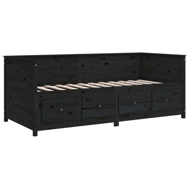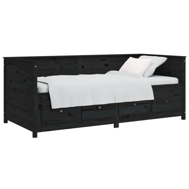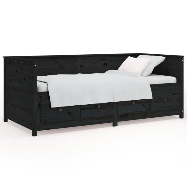 vidaXL Dnevna postelja črna 75x190 cm trdna borovina