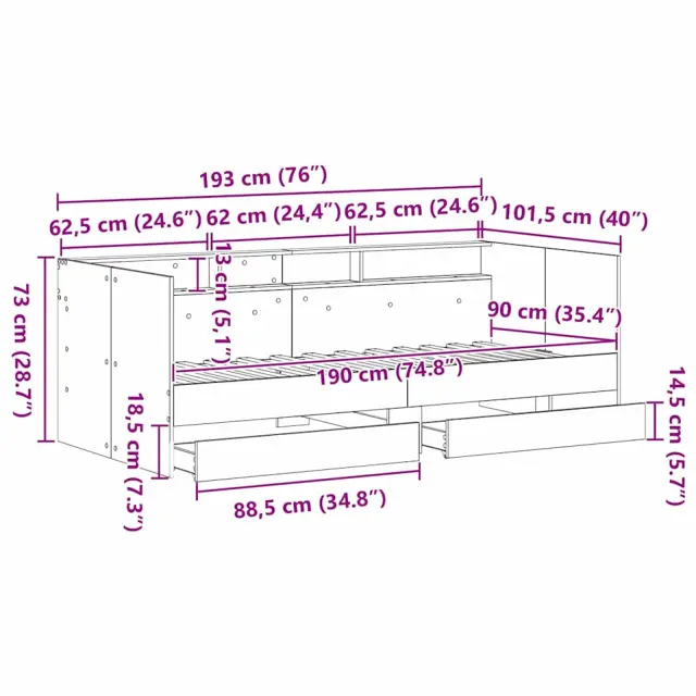 Ta rustikalna dnevna postelja iz inženirskega lesa s predali je zasnovana za sodobne prostore. Ponuja odlično kombinacijo funkcionalnosti in estetike. Njene čiste linije in minimalna dekoracija jo naredijo primerno za vsako spalnico, ki ceni preprostost. Dnevna postelja može služiti več namenom, zlahka preide iz kavča v udobno posteljo, kar jo postavlja med idealne izbire za majhne apartmaje, kjer je pohištvo z dvojnim namenom na ceni. Njena edinstvena zasnova omogoča številne dekorativne možnosti, ki ustrezajo različnim okusom.