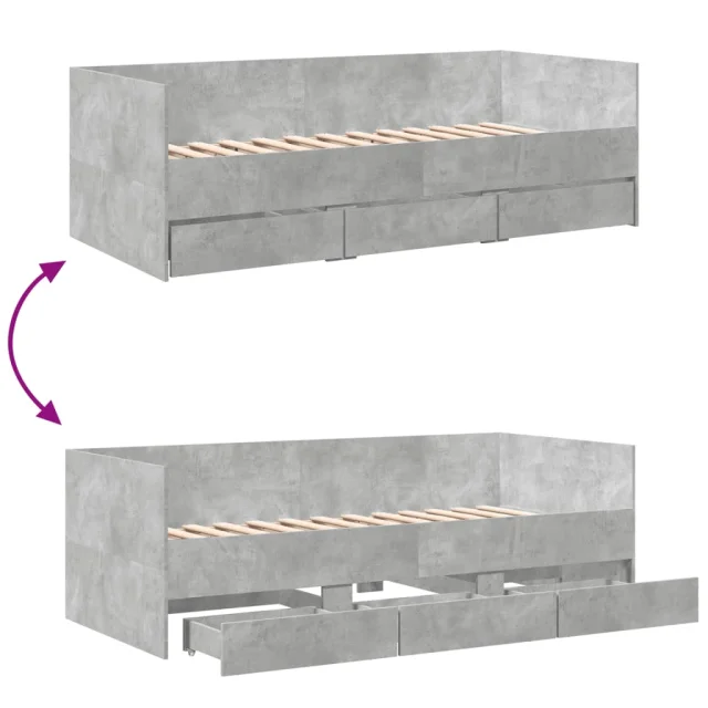 vidaXL Dnevna postelja s predali betonsko siva 90x200 cm inž. les