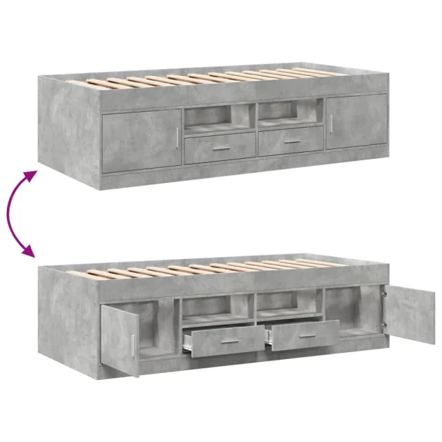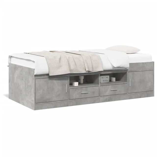 vidaXL Dnevna postelja s predali betonsko siva 90x200 cm inž. les