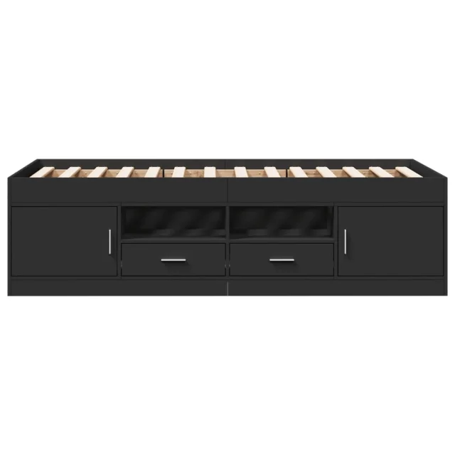vidaXL Dnevna postelja s predali črna 90x190 cm inženirski les