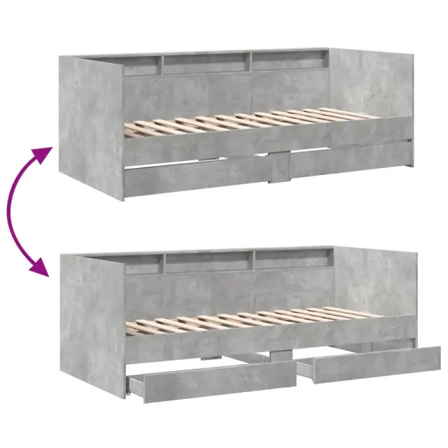 Ta dnevna postelja 2 v 1 s predali, ki služi kot kavč in postelja, je praktičen in privlačen dodatek za vašo dnevno sobo ali spalnico. Vsestranska dnevna postelja: Raztegljiv kavč čez dan deluje kot kavč, ponoči pa se spremeni v posteljo, kar je priročna rešitev za sprejemanje gostov. Veliko prostora za shranjevanje: Ta postelja za goste ima 2 predala s kolesi, ki zagotavljata dovolj prostora za shranjevanje oblačil, nogavic, igrač, blazin itd.Trdna konstrukcija: Ta dnevna postelja ima trpežen okvir iz inženirskega lesa. Inženirski les se ponaša z izjemno kakovostjo, gladko površino ter močjo, stabilnostjo in odpornostjo na vlago. Dobro je vedeti:Paket vsebuje samo okvir postelje. Vzmetnica ni priložena. V naši trgovini si lahko ogledate ustrezne vzmetnice.Barva: Betonsko sivaMaterial: Inženirski lesCelotne dimenzije: 203 x 110 x 73 cm (D x Š x V) Velikost primerne vzmetnice: 100 x 200 cm (Š x D) (vzmetnica ni priložena)Višina prostora pod posteljo: 18,5 cmDimenzije predala (vsak): 93,5 x 31,5 x 14,5 cm (D x Š x V)Potrebno sestavljanje: DaPaket vsebuje:1 x Dnevna postelja2 x Posteljni predal 3280842