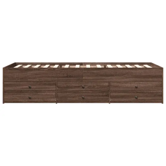 Ta dnevna postelja 2 v 1 s predali, ki služi kot kavč in postelja, je praktičen in privlačen dodatek za vašo dnevno sobo ali spalnico. Vsestranska dnevna postelja: To je priročna rešitev za sprejemanje gostov in maksimalno povečanje prostora. Veliko prostora za shranjevanje: Ta postelja za goste ima 6 predalov s kolesi, ki zagotavljajo dovolj prostora za shranjevanje oblačil, nogavic, igrač, blazin itd.Trdna konstrukcija: Ta dnevna postelja ima trpežen okvir iz inženirskega lesa. Inženirski les se ponaša z izjemno kakovostjo, gladko površino ter močjo, stabilnostjo in odpornostjo na vlago. Dobro je vedeti:Paket vsebuje samo okvir postelje. Vzmetnica ni priložena. V naši trgovini si lahko ogledate ustrezne vzmetnice.Barva: Rjav hrastMaterial: Inženirski lesCelotne dimenzije: 203 x 93 x 45,5 cm (D x Š x V) Velikost primerne vzmetnice: 90 x 200 cm (Š x D) (vzmetnica ni priložena)Dimenzije predala (vsak): 65 x 30 x 11,5 cm (D x Š x V)Potrebno sestavljanje: DaPaket vsebuje:1 x Dnevna postelja6 x Predal za posteljo 3280880