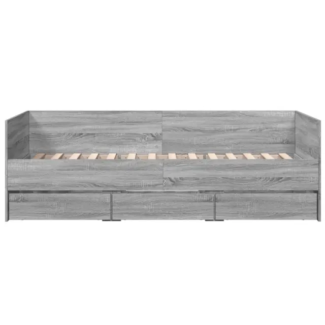 Ta dnevna postelja 2 v 1 s predali, ki služi kot kavč in postelja, je praktičen in privlačen dodatek za vašo dnevno sobo ali spalnico. Vsestranska dnevna postelja: Raztegljiva postelja čez dan deluje kot kavč, ponoči pa se z izvlečenim ležiščem zlahka spremeni v zakonsko posteljo, kar je priročna rešitev za sprejemanje gostov in maksimalno povečanje prostora. Veliko prostora za shranjevanje: Ta postelja za goste ima 3 predale s kolesi, ki zagotavljajo dovolj prostora za shranjevanje oblačil, nogavic, igrač, blazin itd.Trdna konstrukcija: Ta dnevna postelja ima trpežen okvir iz inženirskega lesa. Inženirski les se ponaša z izjemno kakovostjo, gladko površino ter močjo, stabilnostjo in odpornostjo na vlago. Dobro je vedeti:Paket vsebuje samo okvir postelje. Vzmetnica ni priložena. V naši trgovini si lahko ogledate ustrezne vzmetnice.Barva: Siva sonomaMaterial: Inženirski lesCelotne dimenzije: 203 x 102 x 65 cm (D x Š x V) Velikost primerne vzmetnice: 100 x 200 cm (Š x D) (vzmetnica ni priložena)Dimenzije predala (vsak): 65 x 47 x 17 cm (D x Š x V)Potrebno sestavljanje: DaPaket vsebuje:1 x Dnevna postelja3 x Predal za posteljo 3280816