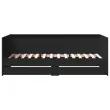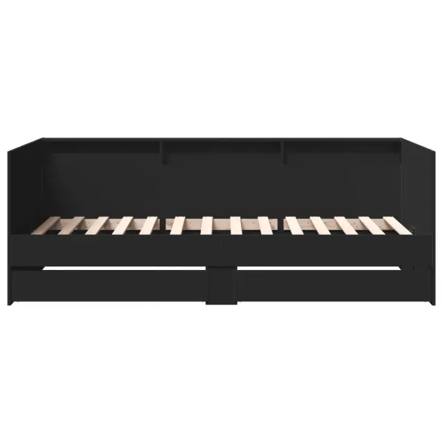Ta dnevna postelja 2 v 1 s predali, ki služi kot kavč in postelja, je praktičen in privlačen dodatek za vašo dnevno sobo ali spalnico. Vsestranska dnevna postelja: Raztegljiv kavč čez dan deluje kot kavč, ponoči pa se spremeni v posteljo, kar je priročna rešitev za sprejemanje gostov. Veliko prostora za shranjevanje: Ta postelja za goste ima 2 predala s kolesi, ki zagotavljata dovolj prostora za shranjevanje oblačil, nogavic, igrač, blazin itd.Trdna konstrukcija: Ta dnevna postelja ima trpežen okvir iz inženirskega lesa. Inženirski les se ponaša z izjemno kakovostjo, gladko površino ter močjo, stabilnostjo in odpornostjo na vlago. Dobro je vedeti:Paket vsebuje samo okvir postelje. Vzmetnica ni priložena. V naši trgovini si lahko ogledate ustrezne vzmetnice.Barva: ČrnaMaterial: Inženirski lesCelotne dimenzije: 203 x 110 x 73 cm (D x Š x V) Velikost primerne vzmetnice: 100 x 200 cm (Š x D) (vzmetnica ni priložena)Višina prostora pod posteljo: 18,5 cmDimenzije predala (vsak): 93,5 x 31,5 x 14,5 cm (D x Š x V)Potrebno sestavljanje: DaPaket vsebuje:1 x Dnevna postelja2 x Posteljni predal 3280840