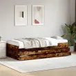 Ta dnevna postelja 2 v 1 s predali, ki služi kot kavč in postelja, je praktičen in privlačen dodatek za vašo dnevno sobo ali spalnico. Vsestranska dnevna postelja: To je priročna rešitev za sprejemanje gostov in maksimalno povečanje prostora. Veliko prostora za shranjevanje: Ta postelja za goste ima 6 predalov s kolesi, ki zagotavljajo dovolj prostora za shranjevanje oblačil, nogavic, igrač, blazin itd.Trdna konstrukcija: Ta dnevna postelja ima trpežen okvir iz inženirskega lesa. Inženirski les se ponaša z izjemno kakovostjo, gladko površino ter močjo, stabilnostjo in odpornostjo na vlago. Dobro je vedeti:Paket vsebuje samo okvir postelje. Vzmetnica ni priložena. V naši trgovini si lahko ogledate ustrezne vzmetnice.Barva: Dimljeni hrastMaterial: Inženirski lesCelotne dimenzije: 203 x 93 x 45,5 cm (D x Š x V) Velikost primerne vzmetnice: 90 x 190 cm (Š x D) (vzmetnica ni priložena)Dimenzije predala (vsak): 62 x 30 x 11,5 cm (D x Š x V)Potrebno sestavljanje: DaPaket vsebuje:1 x Dnevna postelja6 x Predal za posteljo 3280885