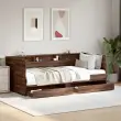 Ta dnevna postelja 2 v 1 s predali, ki služi kot kavč in postelja, je praktičen in privlačen dodatek za vašo dnevno sobo ali spalnico. Vsestranska dnevna postelja: Raztegljiv kavč čez dan deluje kot kavč, ponoči pa se spremeni v posteljo, kar je priročna rešitev za sprejemanje gostov. Veliko prostora za shranjevanje: Ta postelja za goste ima 2 predala s kolesi, ki zagotavljata dovolj prostora za shranjevanje oblačil, nogavic, igrač, blazin itd.Trdna konstrukcija: Ta dnevna postelja ima trpežen okvir iz inženirskega lesa. Inženirski les se ponaša z izjemno kakovostjo, gladko površino ter močjo, stabilnostjo in odpornostjo na vlago. Dobro je vedeti:Paket vsebuje samo okvir postelje. Vzmetnica ni priložena. V naši trgovini si lahko ogledate ustrezne vzmetnice.Barva: Rjav hrastMaterial: Inženirski lesCelotne dimenzije: 193 x 86,5 x 73 cm (D x Š x V) Velikost primerne vzmetnice: 75 x 190 cm (Š x D) (vzmetnica ni priložena)Višina prostora pod posteljo: 18,5 cmDimenzije predala (vsak): 88,5 x 31,5 x 14,5 cm (D x Š x V)Potrebno sestavljanje: DaPaket vsebuje:1 x Dnevna postelja2 x Posteljni predal 3280866