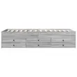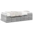 Ta dnevna postelja 2 v 1 s predali, ki služi kot kavč in postelja, je praktičen in privlačen dodatek za vašo dnevno sobo ali spalnico. Vsestranska dnevna postelja: To je priročna rešitev za sprejemanje gostov in maksimalno povečanje prostora. Veliko prostora za shranjevanje: Ta postelja za goste ima 6 predalov s kolesi, ki zagotavljajo dovolj prostora za shranjevanje oblačil, nogavic, igrač, blazin itd.Trdna konstrukcija: Ta dnevna postelja ima trpežen okvir iz inženirskega lesa. Inženirski les se ponaša z izjemno kakovostjo, gladko površino ter močjo, stabilnostjo in odpornostjo na vlago. Dobro je vedeti:Paket vsebuje samo okvir postelje. Vzmetnica ni priložena. V naši trgovini si lahko ogledate ustrezne vzmetnice.Barva: Siva sonomaMaterial: Inženirski lesCelotne dimenzije: 203 x 93 x 45,5 cm (D x Š x V) Velikost primerne vzmetnice: 90 x 190 cm (Š x D) (vzmetnica ni priložena)Dimenzije predala (vsak): 62 x 30 x 11,5 cm (D x Š x V)Potrebno sestavljanje: DaPaket vsebuje:1 x Dnevna postelja6 x Predal za posteljo 3280886