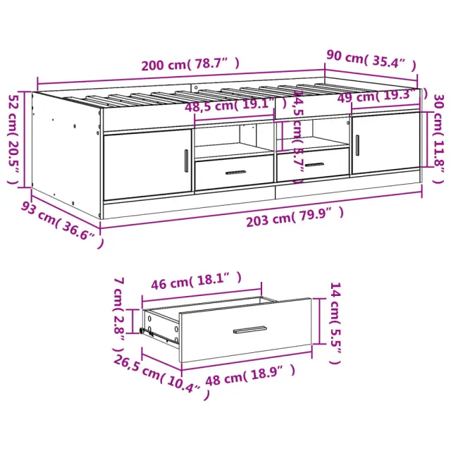 vidaXL Dnevna postelja s predali brez vzmetnice 90x200 cm